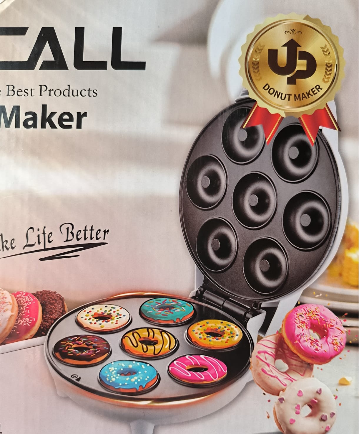 - Donut Maker îți aduce acasa gogoși delicioase cu rezultate perfecte și rapide așa cum vrei tu. Conceput cu o dimensiune mică și atractivă, este perfect pentru a fi combinat cu celelalte ustensile de bucătărie