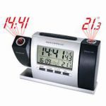 Ceas de camera cu functii multiple, afisaj LCD, doua proiectoare si design modern.