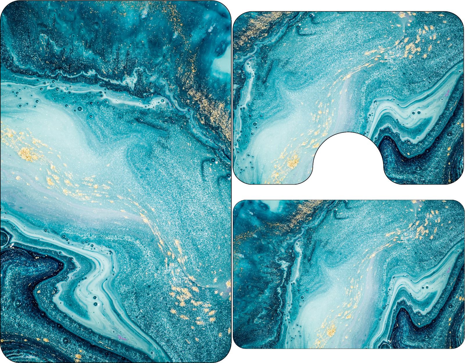 Covoare Pentru Baie, 3 Piese, Antiderapante model albastru abstractie