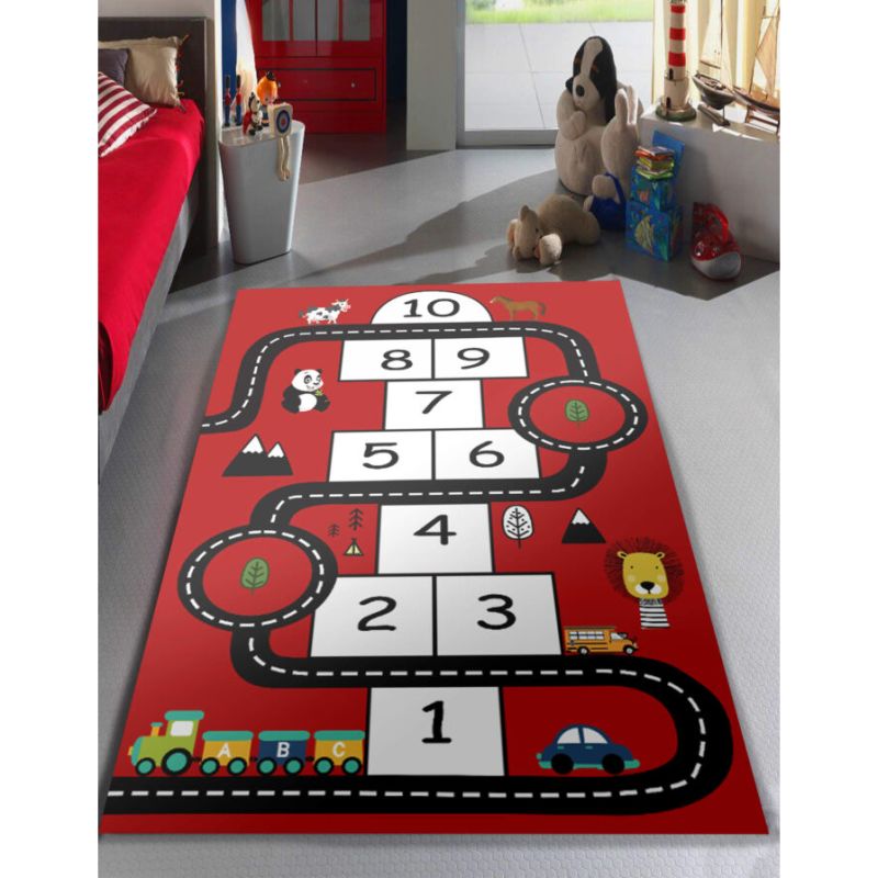 Covor Copii Sotron Model cu Pista 80 x 150 cm Masini, Rosu/Negru/Alb, Antiderapant