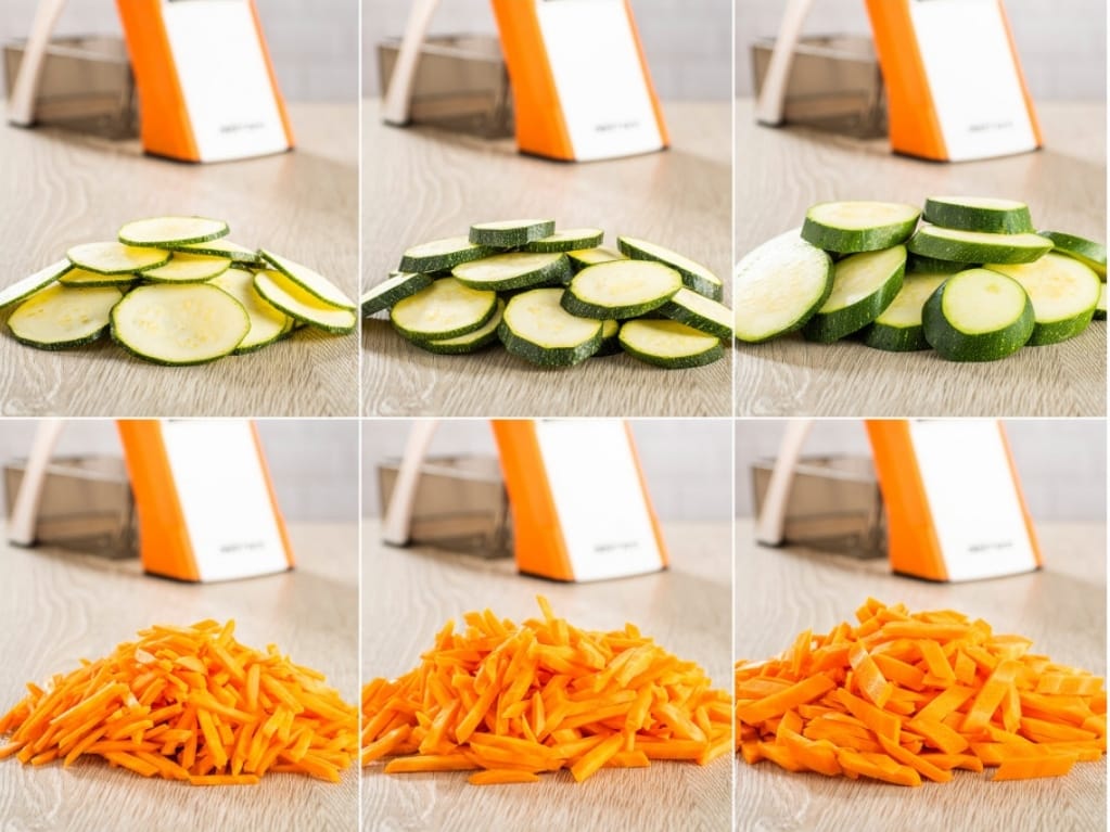 Adaptează cu ușurință grosimea între 0,5mm – 8mm și alege sitlul dorit – julienne sau feliere