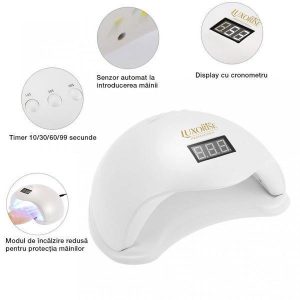 Are un finisaj alb-negru curat, armonizat cu LED-uri colorate.