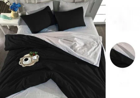 Lenjerie de pat combinata, 2 persoane, bumbac, 4 piese Negru/ Gri