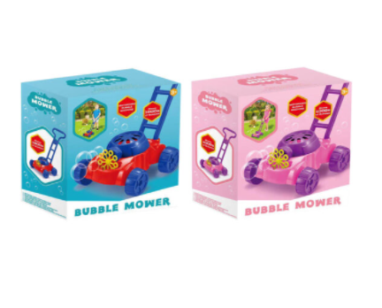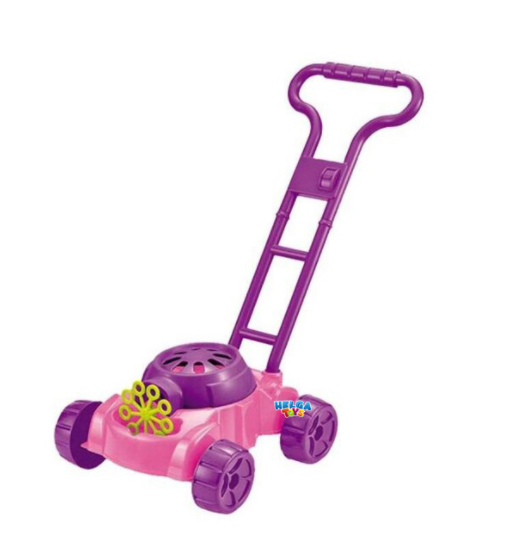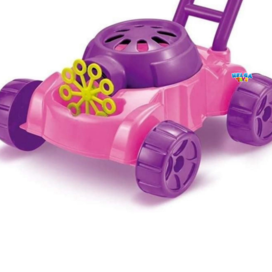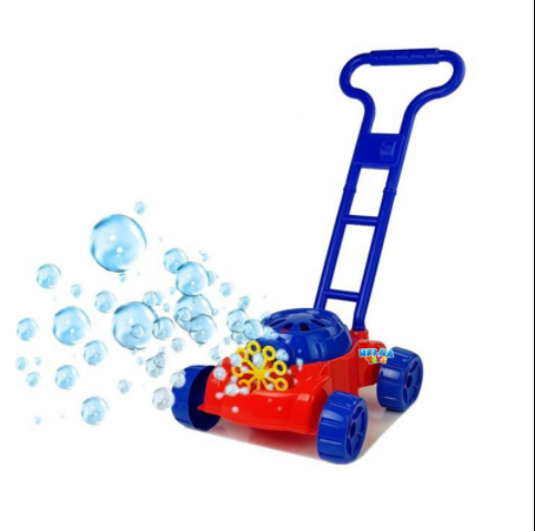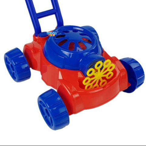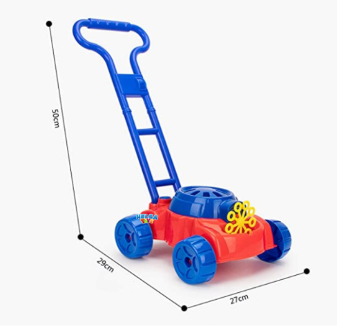 Jucaria este destinata copiilor cu varsta de peste 3 ani. Paleta pentru bule este alimentata de baterii si poate crea bule suflate din partea din fata a masinii de tuns iarba.