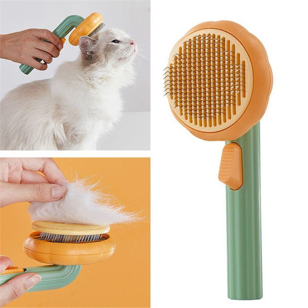 Perie pentru pieptanat animale se curata rapid si usor, iar printr-o apasare de buton, blana colectata va fi eliminata instant!