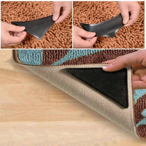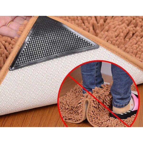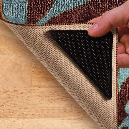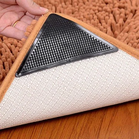 Cu setul de 4 bucati triunghiuri din cauciuc siliconat antiderapant cu adeziv, poti rezolva pentru toteauna problema covoarelor si a mochetelor care se misca si nu stau niciodata la locul lor.